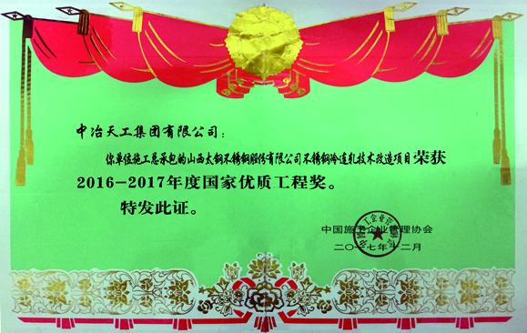 2016-2017年度国家优质工程奖-山西太钢不锈钢冷连轧技术改造工程