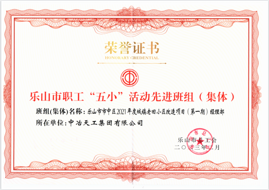項目部把項目建設(shè)和推動產(chǎn)業(yè)工人隊伍建設(shè)改革、提高職工技能素質(zhì)、培養(yǎng)大國工匠同部署、同推進。項目部在施工場地受限的條件下,不斷鉆研創(chuàng)新方法,應(yīng)用可周轉(zhuǎn)組裝滑道轉(zhuǎn)運屋面建筑垃圾、用于石材裝卸及水平運輸?shù)难b置、一種角部防水層墊層模具,優(yōu)化施工工藝,提高施工效率。4月26日,樂山市總工會、樂山廣播電視臺聯(lián)合舉辦“中國夢·勞動美——凝心鑄魂跟黨走 團結(jié)奮斗新征程”2023年樂山市五一表彰活動,對2022年度為樂山市發(fā)展做出突出貢獻(xiàn)的單位、班組及個人進行表彰激勵,樂山市老舊小區(qū)改造項目斬獲樂山市職工“五小”活動先進班組(集體)榮譽稱號。