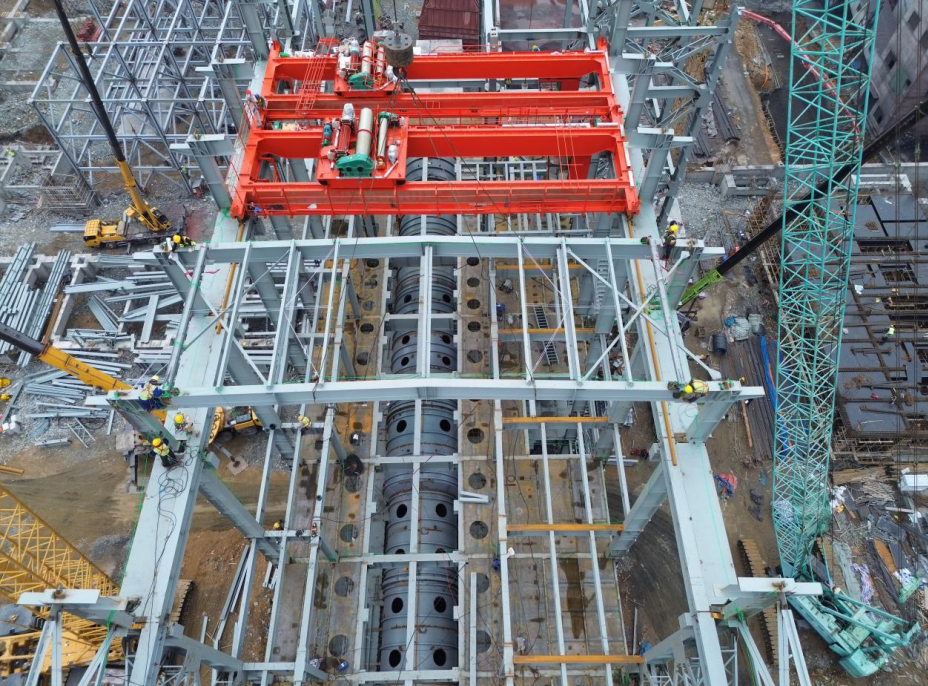 短短44天內(nèi),項目團隊實現(xiàn)2400噸鋼結(jié)構(gòu)精準安裝,這一成果的背后,是技術(shù)創(chuàng)新與科學(xué)管理的雙重支撐。團隊引入Tekla 三維建模技術(shù),通過數(shù)字化模擬優(yōu)化構(gòu)件預(yù)制與吊裝流程,有效提升現(xiàn)場施工精度;啟用智能化項目管理系統(tǒng),實時監(jiān)控施工進度、質(zhì)量及安全指標,保障各工序無縫銜接、高效推進。同時,項目建立業(yè)主、施工單位、監(jiān)理單位三方協(xié)同機制,通過每日碰頭會、周進度復(fù)盤會等形式,及時解決交叉作業(yè)中的難點問題,為多專業(yè)并行施工創(chuàng)造了有利條件。