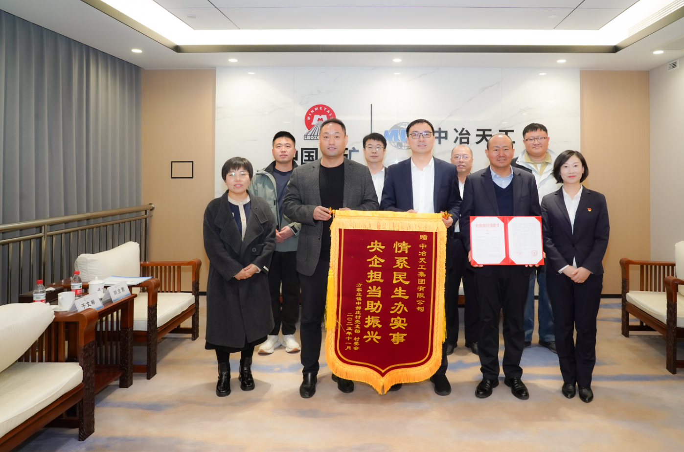 近日,天津市寶坻區(qū)方家莊鎮(zhèn)中郝莊村黨支部、村委會相關(guān)負(fù)責(zé)同志到訪中冶天工,代表方家莊鎮(zhèn)黨委、政府向公司送來感謝信和錦旗,衷心感謝公司黨委對方家莊鎮(zhèn)給予的大力支持以及為鄉(xiāng)村振興作出的積極貢獻(xiàn)。