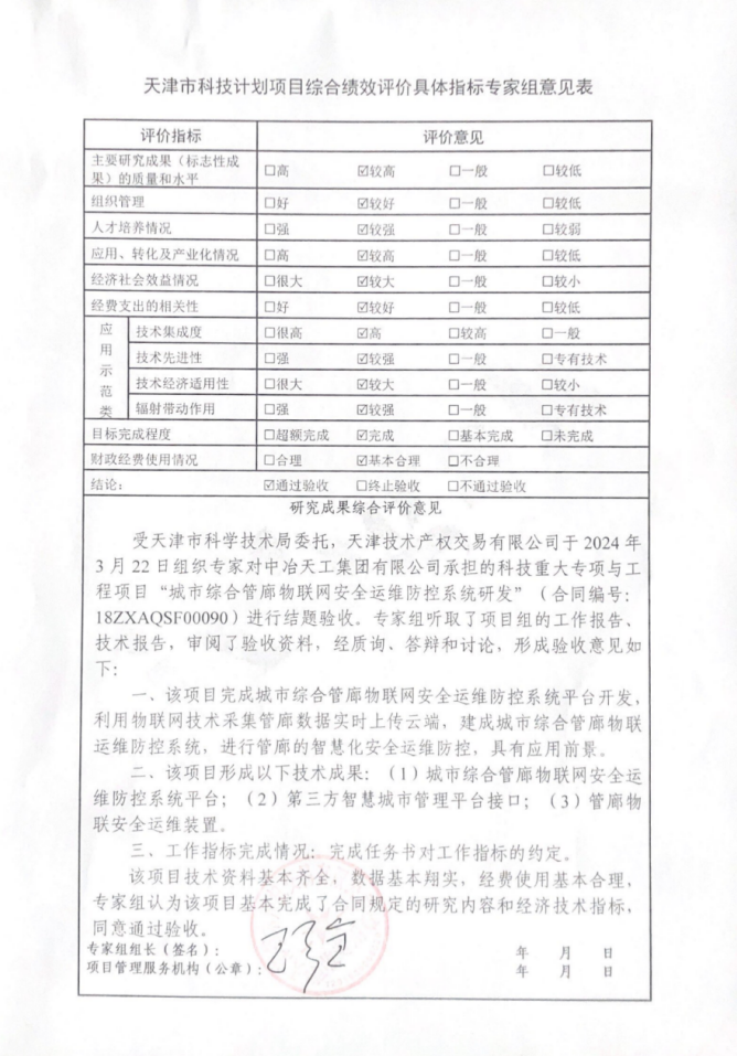 近日,由中冶天工承擔的天津市科技計劃項目《城市綜合管廊物聯(lián)網(wǎng)安全運維防控系統(tǒng)研發(fā)》通過結項驗收。該項目歷經(jīng)數(shù)年艱苦攻關,系統(tǒng)地解決了基于物聯(lián)網(wǎng)技術的地下綜合管廊及管線在運行使用過程中的風險評估和安全監(jiān)管問題,并取得了一系列重要的科研成果,為推動管廊運維技術領域的進步和產(chǎn)業(yè)發(fā)展作出了重大貢獻。