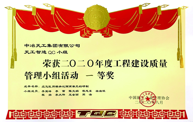 2020年度工程建设质量管理小组活动一等奖-应急医用模块化隔离单元的研制