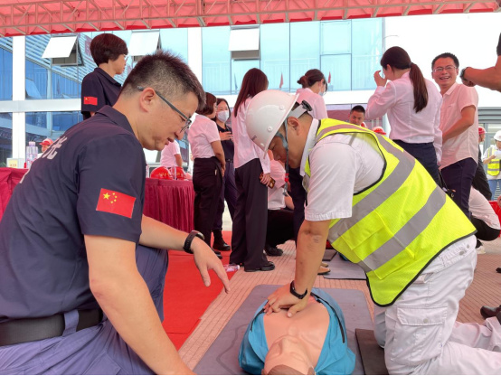 漳州市曙光救援隊員向全體員工講解了應(yīng)急救援的基本技能、個人安全防護(hù)技能、消防安全知識,重點(diǎn)示范了心肺復(fù)蘇、人工呼吸、海姆立克急救法的正確操作流程,以及滅火器的使用方法、滅火步驟。提醒大家一定要提高安全意識,加強(qiáng)應(yīng)急救援知識儲備,提高應(yīng)急救援能力,掌握必要的救援措施。