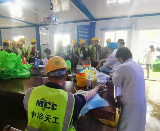 體檢活動(dòng)前,醫(yī)護(hù)人員為項(xiàng)目部全體人員科普職業(yè)病等傳染病的危害以及相關(guān)防護(hù)知識(shí),并耐心解答大家日常生活中遇到的健康問題,有效緩解職工對(duì)自身健康問題的焦慮,幫助大家及時(shí)了解自身身體狀況。