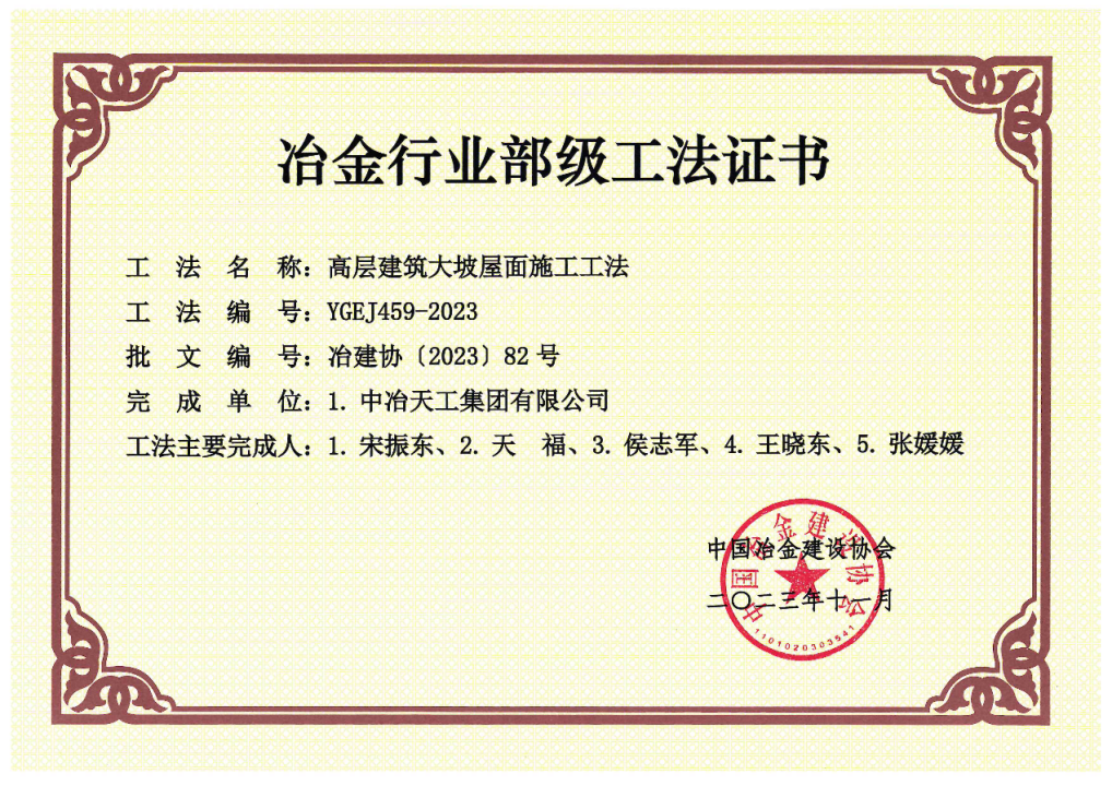 獲評(píng)工法《大型室外造浪池混凝土結(jié)構(gòu)施工工法》借助公司滄州文化旅游城項(xiàng)目實(shí)施過程而總結(jié)提煉形成一種大型室外造浪池混凝土結(jié)構(gòu)施工技術(shù),解決了施工過程中異形結(jié)構(gòu)模架支設(shè)困難、大體積混凝土水化熱釋放不完全、多層大底板內(nèi)預(yù)埋給水管上浮、大底板弧形表面標(biāo)高控制誤差過大等難題;工法《高層建筑大坡屋面施工工法》以滄州濱海童世界項(xiàng)目為依托,通過優(yōu)化項(xiàng)目大坡屋面施工措施方案,設(shè)計(jì)便捷的施工操作平臺(tái),不僅提高坡屋面的施工效率,降低成本,更有效保障施工人員的安全。