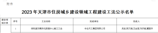 近日,天津市住房城鄉(xiāng)建設委公布了“2023年天津市住房城鄉(xiāng)建設領域工程建設工法”獲獎結果,城建公司裝備公司兩項工法均榮獲該工法。