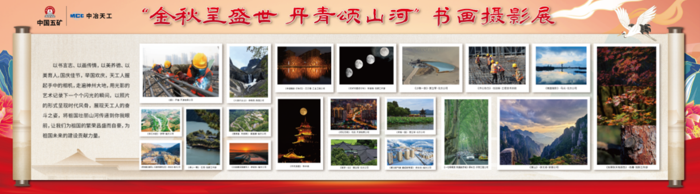 金秋呈盛世,丹青頌山河。中冶天工開展書畫攝影展,職工們用書畫、攝影作品歌頌祖國的大好河山,歌頌祖國的繁榮昌盛,展現(xiàn)天工人建設(shè)祖國,辛勤耕耘神州大地的堅(jiān)守和付出,進(jìn)一步傳承中華優(yōu)秀文化,準(zhǔn)確把握時代脈搏,揮毫運(yùn)筆,飽蘸濃墨書寫時代風(fēng)骨,弘揚(yáng)中華優(yōu)秀傳統(tǒng)文化,充分展現(xiàn)廣大員工文化素養(yǎng)與才華。此次書畫攝影展達(dá)到了以書言志、以畫傳情,以美養(yǎng)德、以美育人的目的,進(jìn)一步號召廣大職工在戮力同心,砥礪前行的文化熏陶中強(qiáng)化自豪感使命感,為祖國的繁榮昌盛而自豪,為祖國未來的建設(shè)貢獻(xiàn)力量。