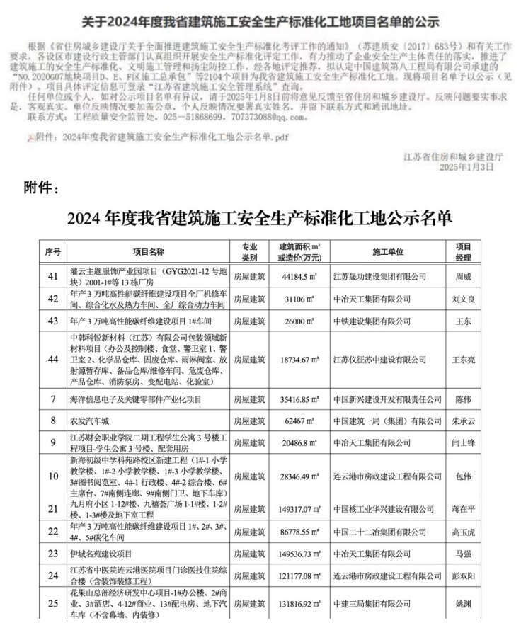 新年傳喜訊,奮楫開新局。1月3日,中原公司承建的中復(fù)神鷹年產(chǎn)3萬(wàn)噸高性能碳纖維建設(shè)項(xiàng)目、伊城名苑項(xiàng)目、江蘇財(cái)會(huì)職業(yè)學(xué)院二期工程學(xué)生公寓項(xiàng)目同時(shí)通過(guò)江蘇省建筑施工安全生產(chǎn)標(biāo)準(zhǔn)化工地評(píng)定并公示。