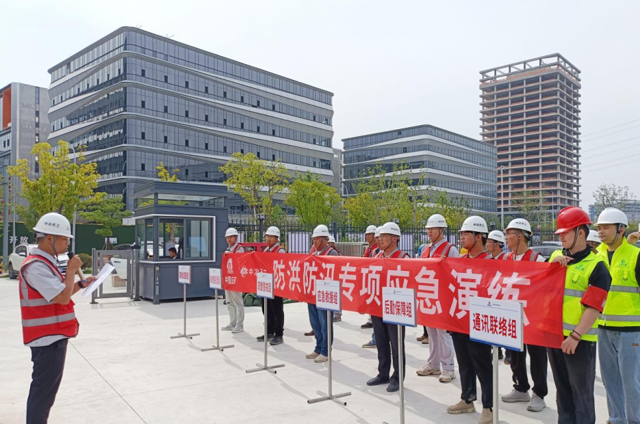 此次演練以極端暴雨天氣為預(yù)設(shè)背景,結(jié)合項目防汛防臺應(yīng)急預(yù)案及工業(yè)園區(qū)防汛抗旱應(yīng)急響應(yīng)簡化程序,設(shè)置項目內(nèi)部開展自救、上報災(zāi)情請求外援、現(xiàn)場發(fā)生淹溺磕碰安全事故、項目房屋遇災(zāi)受損等四項情景。面對“突發(fā)險情”,項目部迅速啟動應(yīng)急預(yù)案,現(xiàn)場指揮果斷決策,各應(yīng)急小組快速響應(yīng)集結(jié),按照任務(wù)分工密切配合、協(xié)同作戰(zhàn),針對演練中突發(fā)的各類情況,快速作出反應(yīng),緊張有序地完成了各項搶險任務(wù),展現(xiàn)了良好的應(yīng)急處置能力和團隊協(xié)作精神。