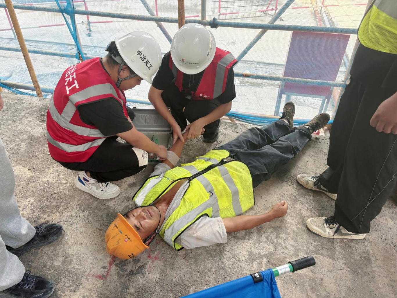 五福嘉園(一)(二)工程項目組織開展高處墜落事故應(yīng)急演練,模擬演練外架班組在二層增設(shè)連墻件時,不慎摔落,現(xiàn)場專職安全員第一時間向應(yīng)急救援領(lǐng)導(dǎo)小組組長報告,并迅速啟動應(yīng)急救援預(yù)案。各組接到命令后齊奔事故現(xiàn)場,安全警戒組拉起了警戒線,通訊聯(lián)絡(luò)組負(fù)責(zé)傳達(dá)現(xiàn)場指揮指令,物資保障組迅速調(diào)配救援資源,醫(yī)療救護(hù)組進(jìn)行了簡單的醫(yī)療檢查,演示了骨折固定及傷口包扎方法,事故調(diào)查組拍照取證,各組各司其職,演練現(xiàn)場秩序井然,本次演練圓滿完成。