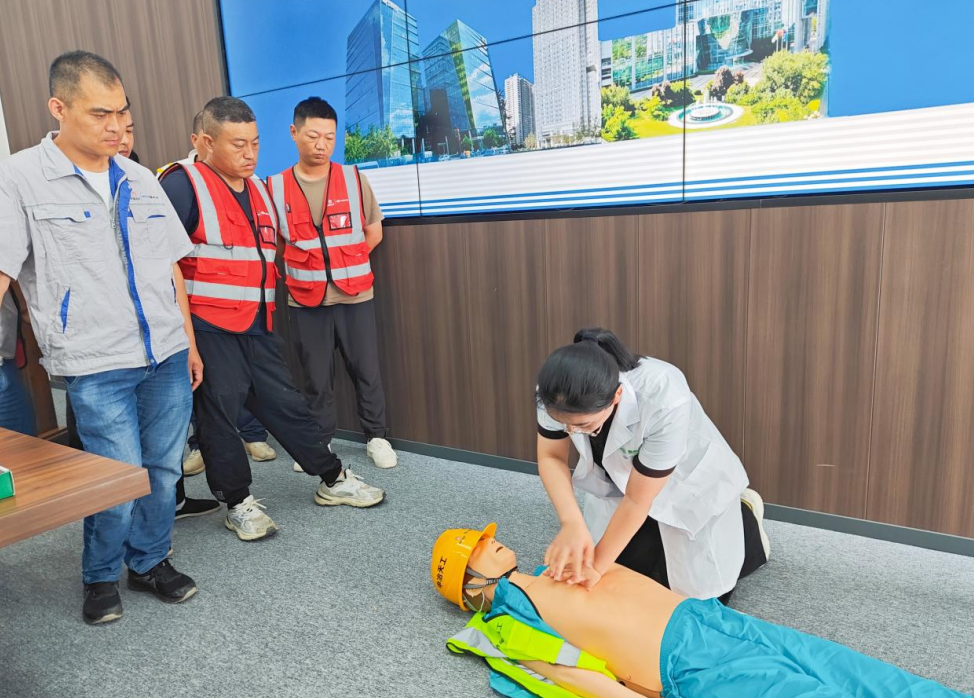 培訓(xùn)會上,醫(yī)護(hù)人員結(jié)合項目施工作業(yè)特點(diǎn),深入淺出地講解了中暑的誘因、不同程度中暑的典型癥狀以及緊急救護(hù)措施,特別強(qiáng)調(diào)了在高溫、高濕、密閉或露天環(huán)境中作業(yè)的風(fēng)險,重點(diǎn)普及了科學(xué)有效的預(yù)防措施,并利用人體模型、急救用具等進(jìn)行了現(xiàn)場授課,針對胸外按壓、人工呼吸正確使用、氣道異物梗阻處理等進(jìn)行了演示,切實(shí)提高項目員工在高溫環(huán)境下的自我保護(hù)與應(yīng)急處置能力。