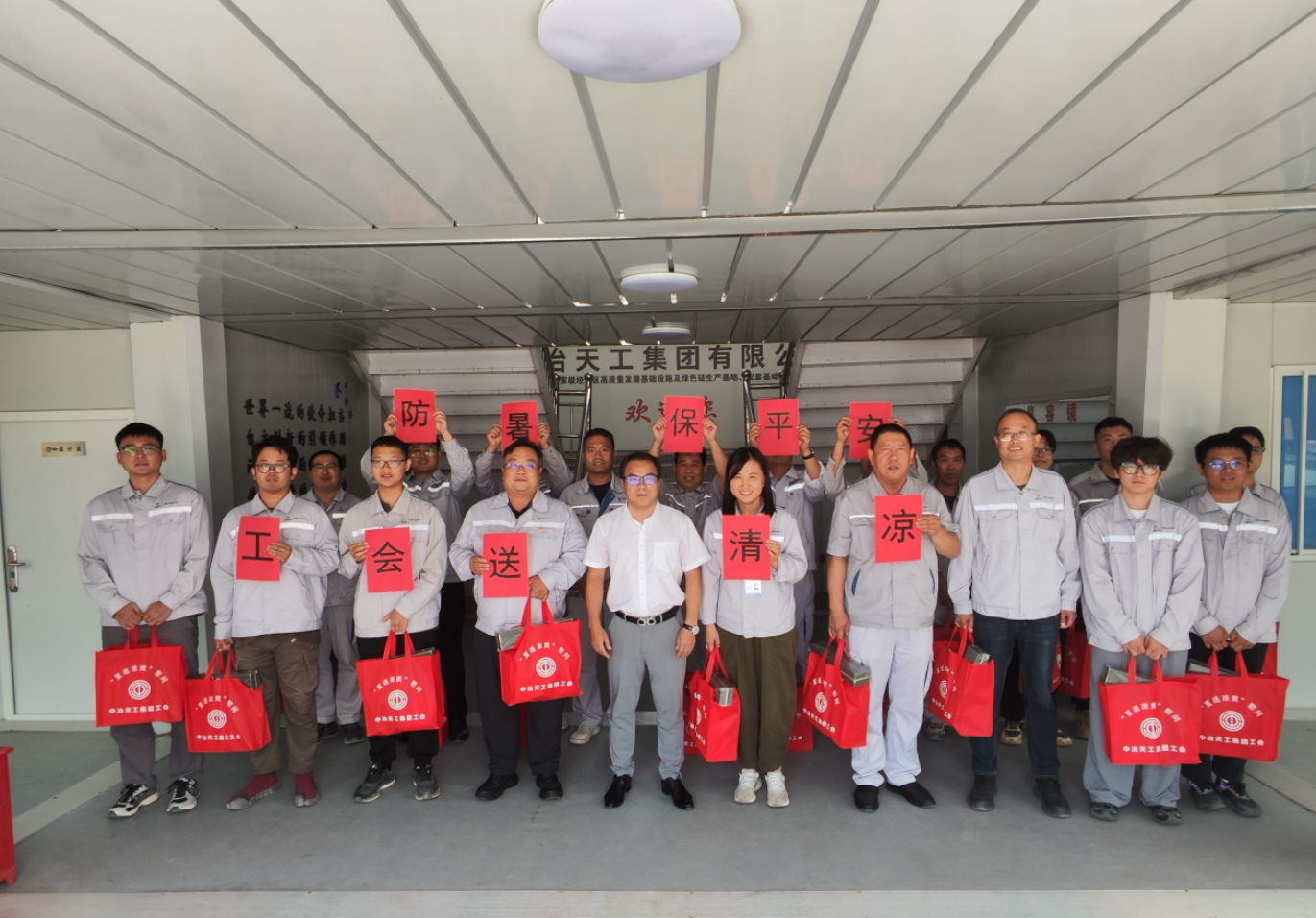 7月15日,安徽公司工會赴寧國國家級經(jīng)開區(qū)高質(zhì)量發(fā)展基礎設施項目現(xiàn)場,開展“工會送清涼 防暑保平安”慰問活動,為高溫天氣下依然堅守在一線的施工人員送去清涼與關懷,切實落實防暑降溫措施,保障職工健康與安全。