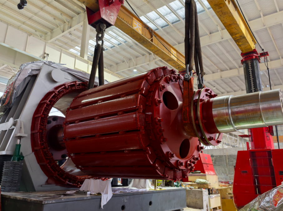 作為重慶市2025年重大項(xiàng)目之一,建成后將有效?促進(jìn)區(qū)域經(jīng)濟(jì)發(fā)展與產(chǎn)業(yè)升級(jí),助力當(dāng)?shù)禺a(chǎn)業(yè)結(jié)構(gòu)優(yōu)化升級(jí)。此次吊裝任務(wù)極具挑戰(zhàn)性,R2主電機(jī)轉(zhuǎn)子重85.6噸,定子重48.1噸,且主電機(jī)穿芯受行車起重能力制約,同時(shí)現(xiàn)場(chǎng)空間受限,給吊裝施工帶來(lái)了不小的技術(shù)難題。
