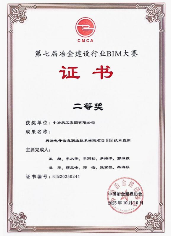 近日,華南公司承建的天津電子信息職業(yè)技術(shù)學(xué)院產(chǎn)教融合實(shí)訓(xùn)基地項(xiàng)目,憑借出色的BIM技術(shù)應(yīng)用成果,榮獲中國冶金建設(shè)協(xié)會第七屆冶金建設(shè)行業(yè)BIM大賽二等獎(jiǎng)。